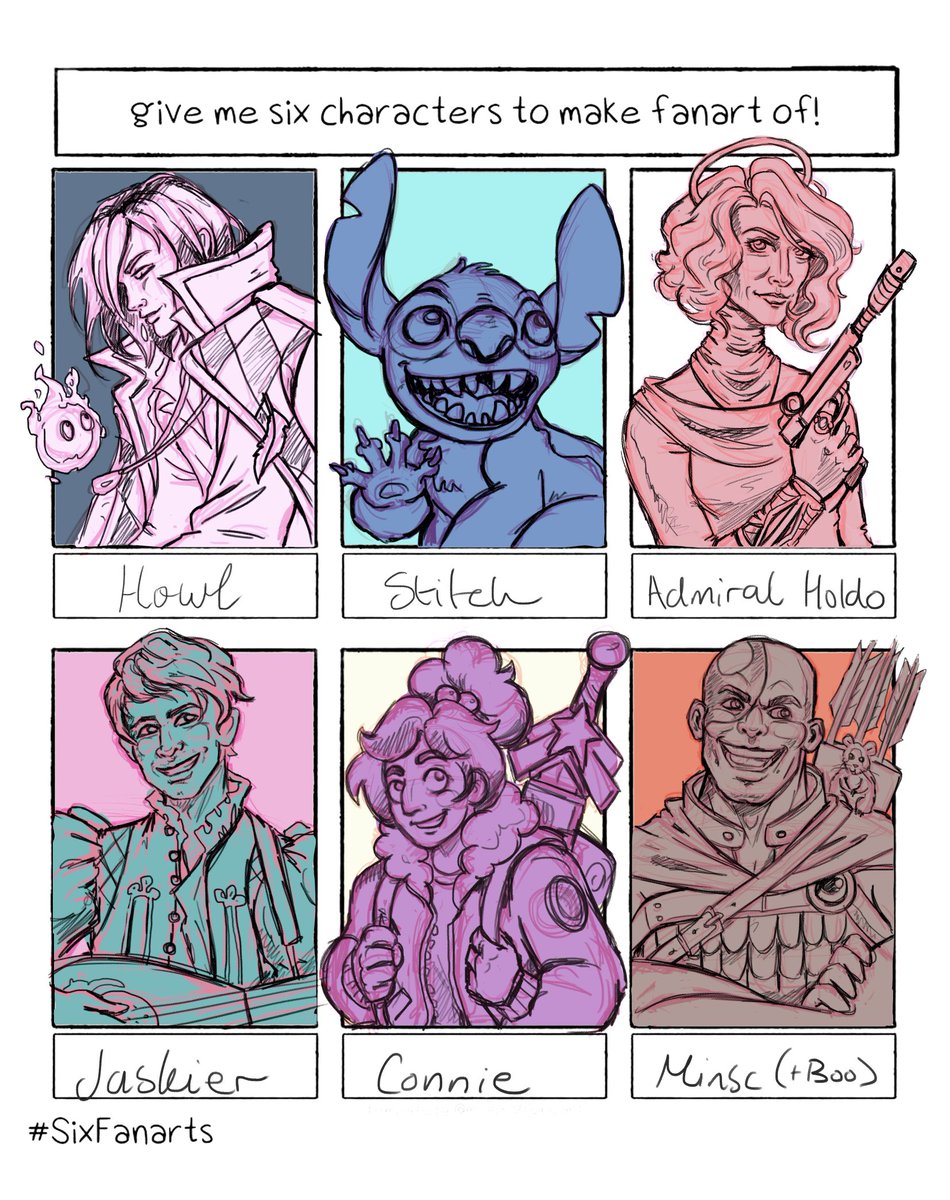 I had such a hard time narrowing this down! #MinscandBoo #jaskier #holdo #howl #stitch #conniestevenuniverse #6fanartschallenge #6fanarts #SixFanarts