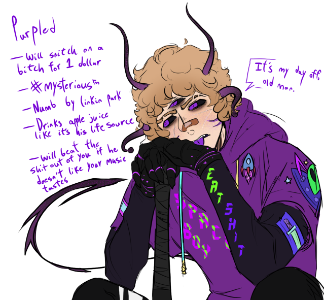 Purpled fanart/headcannon design of mine!! I think it looks pretty neat, and I'm a huge fan of the alien lore he's got going on - although I haven't been very updated on the lore recently lol [Bonus low quality chibis] #art #purpledfanart #commissionsopen #dsmpfanart #mcytfanart