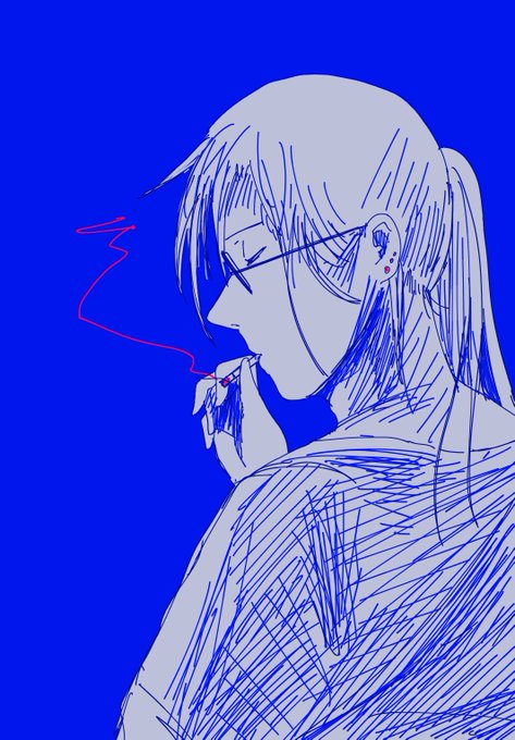 2 8 「青と煙草」 #創作絵 #デジタルイラスト 21/07/24 19:28