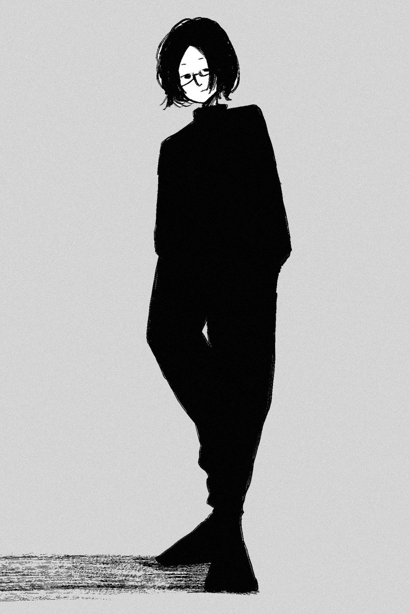 長髪眼鏡の気怠げな人が好きです。 #創作絵 #デジタルイラスト