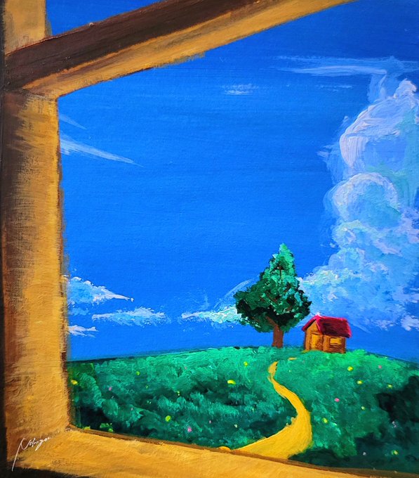 1 4 「青空、海」 #アクリル画 #イラスト #創作絵 #acrylicpainting #fineart #art (先日のグループ展にて購入して頂きました。 ありがたし!🙏) 22/11/10 18:24