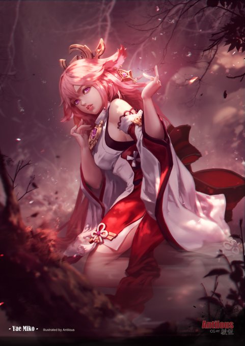 原神:八重神子 Quick #sketch #Genshin #yaemiko 塗塗抹抹,利用空檔快速完成了~~~ 最近真的感覺到手會痠、會痛了...XD dragon-art.tw facebook.com/antilousart/ #illustration #antilousart