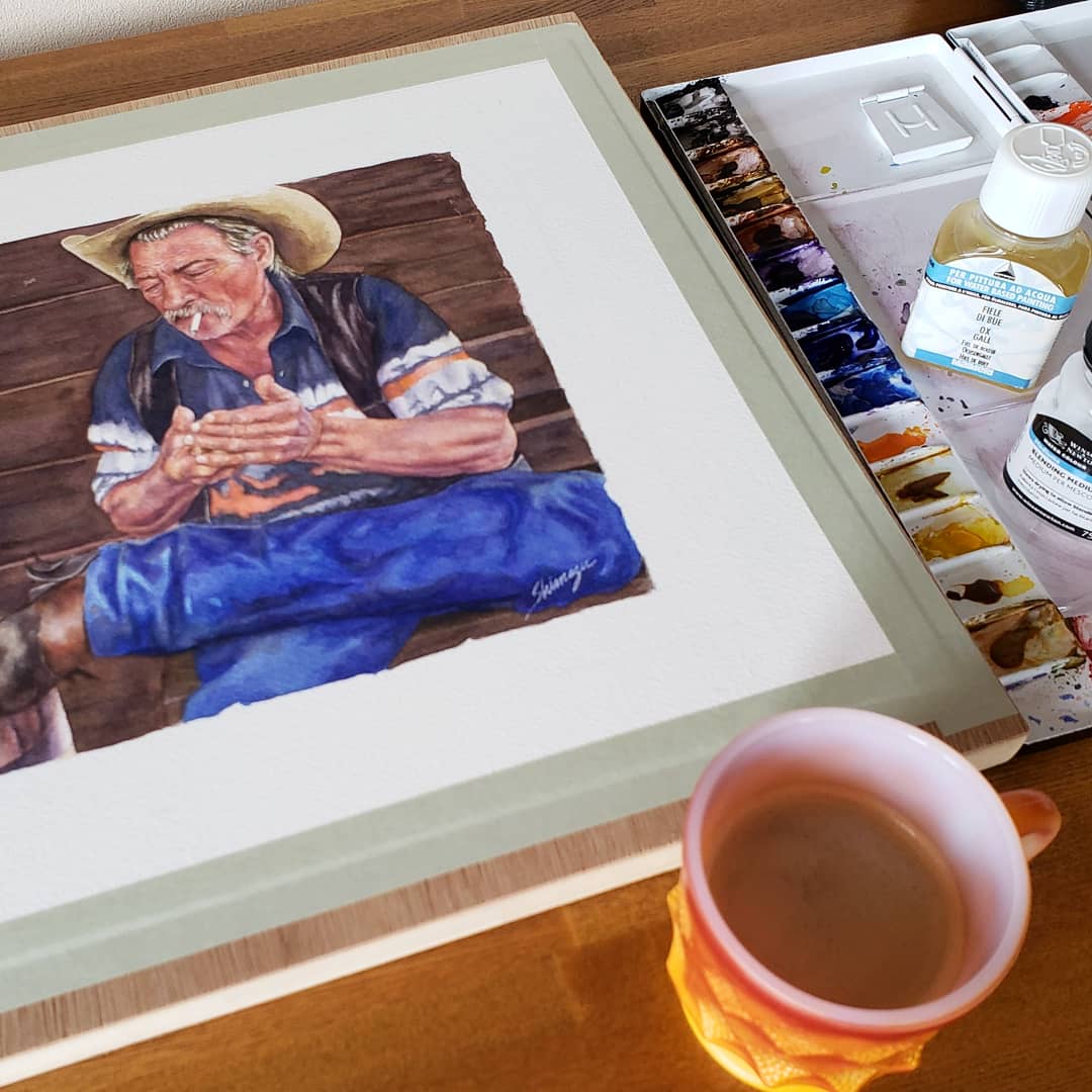 4 39 バーボンとカウボーイハットでアメリカンな絵になったでしょうか? 水彩画なのでもう少しあっさり描けると良かったのですが、少しこってりな絵になりました。まぁ、とりあえず完成です😅 #水彩画 #水彩イラスト #ファイヤーキング #fireking 21/06/06 09:36