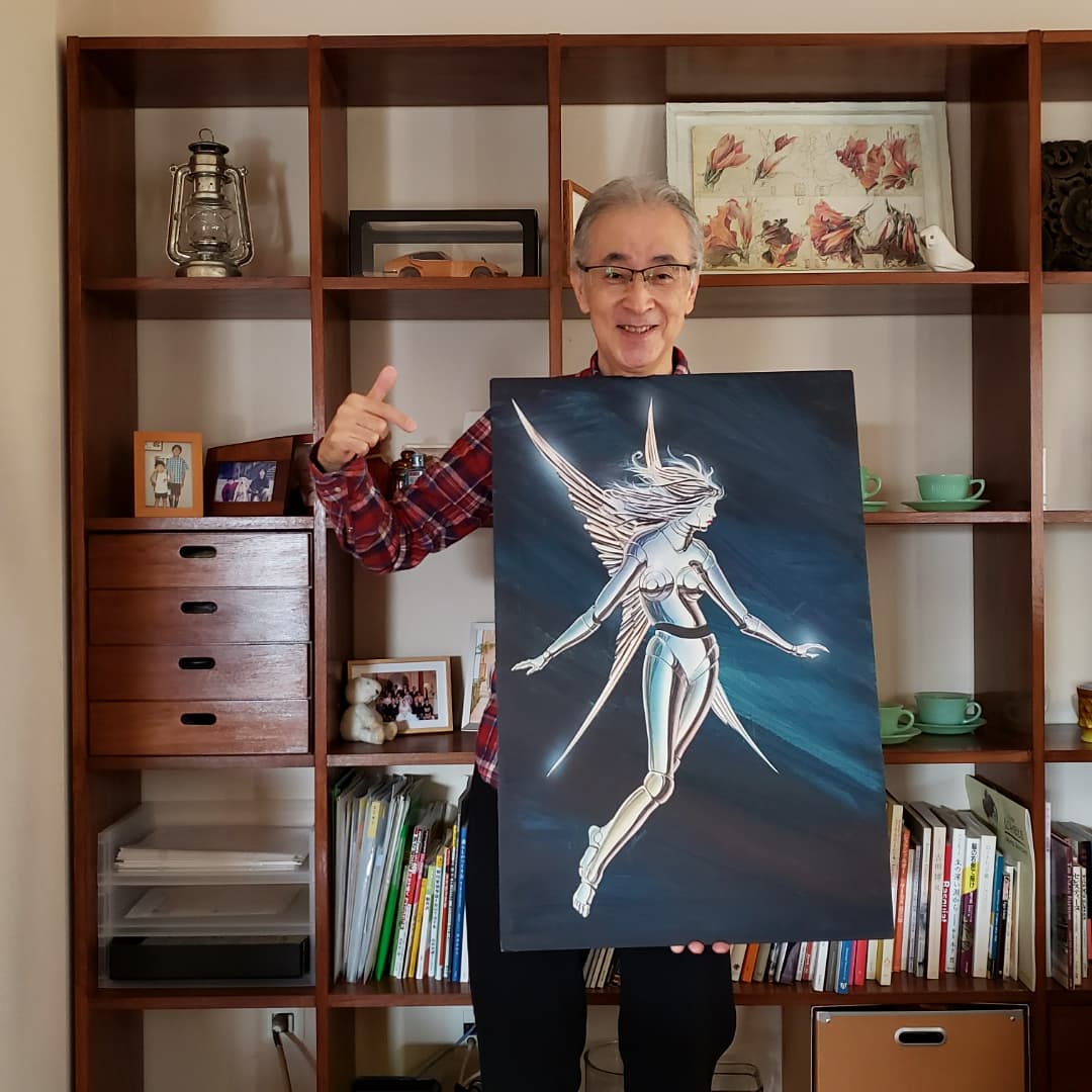 荷物を片付けていたら出てきた何十年も前に描いた「ロボット天使」のイラスト。普段は写真などを参考に水彩画を描くのですが、これは自分で考えたデザインです😀✌️ ソニーの初代AIBOをデザインした著名なイラストレーター、空山基さんの表現テクニックを参考にして描いてみたものです。