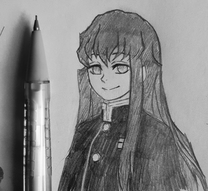 💙My bb💙 Muichiro feels a nostalgic love when he talks to Kohana (inconsistent kohana's kindness reminds him of his mother), he smiles a lot when he is with her and Rengoku #sketchbook #KNY #muichiroutokitou #kimetsunoyaibafanart