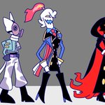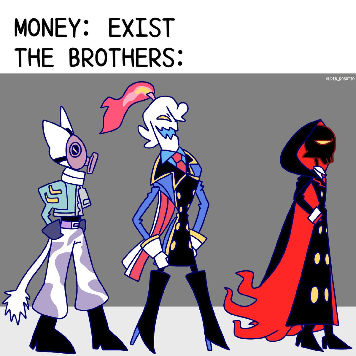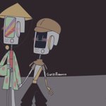 @nelnalium_2 @nelnalium T-Boy is look and laugh at the Brothers Gang who have been failed to catch him for hundreds plans. Also Gregory is fine there. #soulmonitor #fanart #objecthead #skull #candle #gasmask #cat #tvhead #antro #cartoonstyle #trio #city