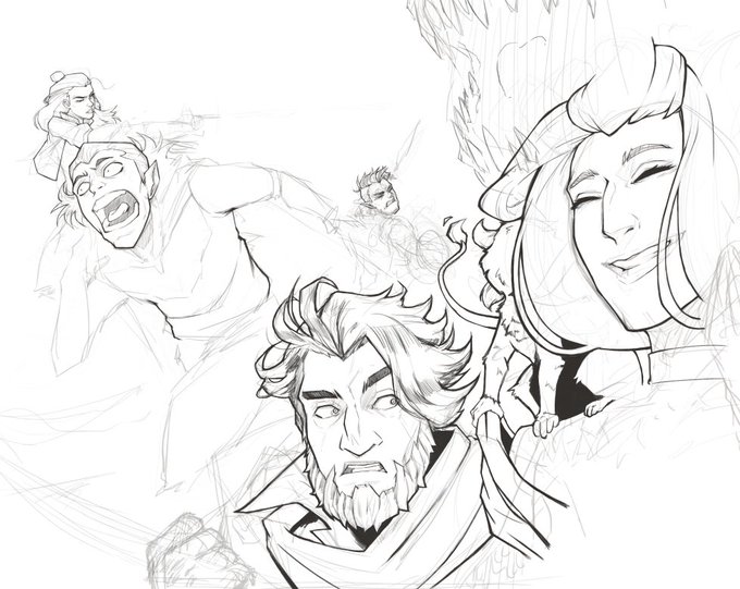 I actually do more than critical role fanart... but not today. I'm still plugging along on this one in my spare time. I got all the faces lined in though. #wipart #criticalrolefanart #CriticalRoleArt #sketchbook