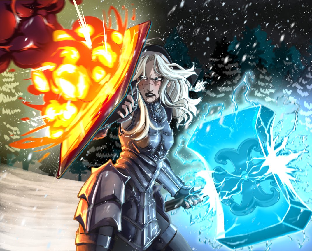 A lot more goes into drawing a fireball than you would think. Anyway, here's a cleric woman doing battle in the snow. #DnDcharacter #dndart #ComicArt #fantasyart