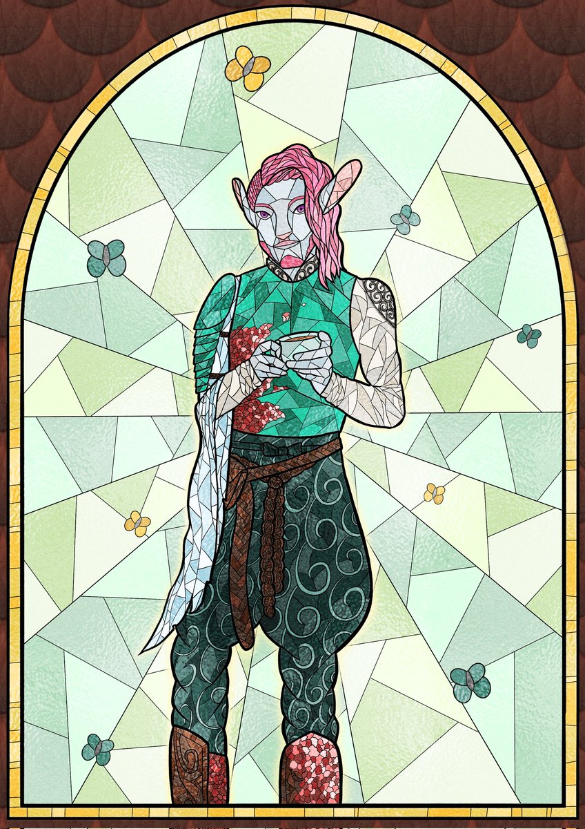 Next up in my stained glass Mighty Nein collection is the world's greatest goblin rogue ... Nott The Brave (as created and played by the one and only @samriegel) Click to see the full res. image #criticalrolefanart #criticalrolenott #criticalrole2