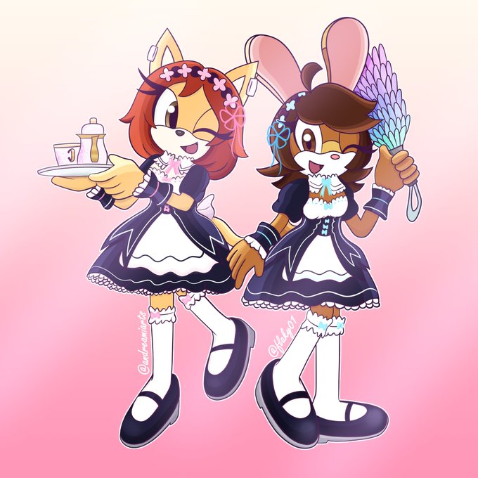 Collab con Flaky01 nuestras sonicsonas como maids #rezero #cosplay #sonicart #sonicoc #sonicsona #SonicTheHedgehog #girls #maids