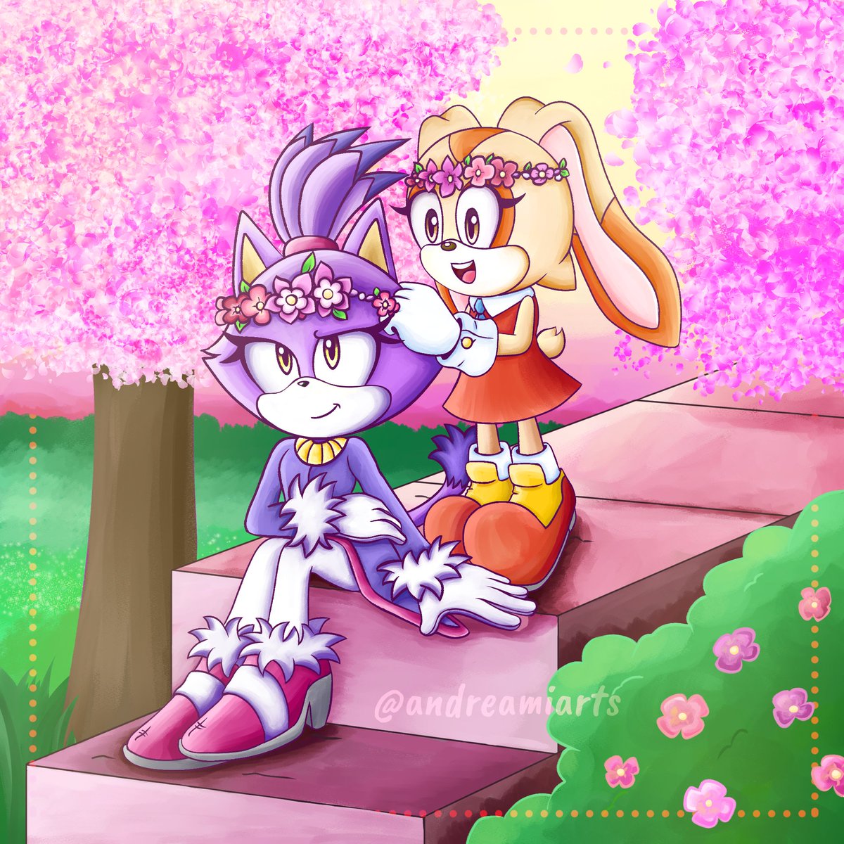 Spring ๐ธ๐๐ท Here this drawing for @SweggyQ congratulations for the 2k followers, you art is amazing โจand hope you like it :3 ๐บ #slq2kdtiys #dtiys #blazethecat #creamtherabbit #SonicTheHedgehog #sonicart #sonicfanart