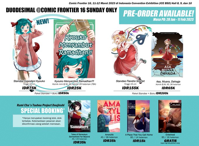 Halo! Saya buka pre-order untuk #comifuro16 hari Minggu! Fandom: Touhou Project Masa PO dari 28 Januari-11 Februari 2023! Silakan klik link gform berikut ini untuk PO! docs.google.com/forms/d/e/1FAI… == Untuk sample buku baru ditunggu dulu ya (uhuk belum selesai uhuk)