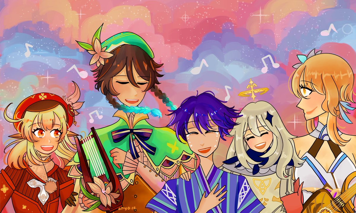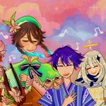 1 4 "so...please leave tsurumi island with us, ruu." tsurumi broke me i will pretend ruu is in mondstadt he is safe happy and healthy 💞 #GenshinImpact #genshinimpactfanart #Klee #venti 21/11/23 12:04