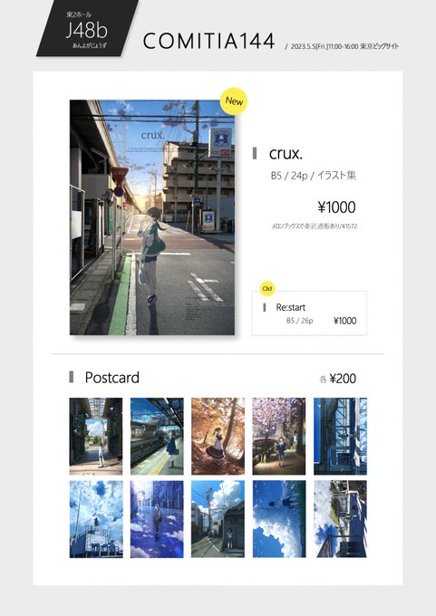 5/5(金)COMITIA144のお品書きです☘️ 新刊の他にポストカード、ポスターを用意しております✨ 委託通販もありますので当日来られない方はぜひご利用ください🙇♂️ ◇通販 melonbooks.co.jp/detail/detail.… #COMITIA144 #コミティア144 #お品書き