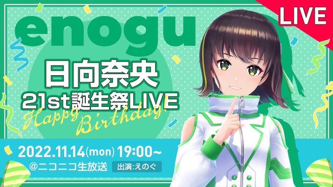 本日19時から #日向奈央21st誕生祭ライブ です!バースデーガールをいっぱいお祝いする!みんなもたくさんお祝いしてね\\\\٩( 'ω' )و ////冒頭無料です!!みてください! live.nicovideo.jp/watch/lv339084…