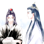 今朝アップしたアイドルパロ忘羨、フォロワーさんと話してて、魏嬰に「藍湛ファンサして」って言われて魏嬰に向かってファンサする藍湛に萌えたので図解した twitter.com/ao108ao/status…
