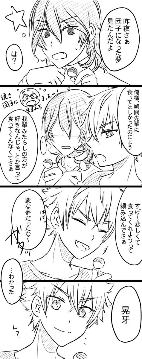 #零晃版深夜の60分一本勝負 @ray_koga_draw 【お題】団子 ある日のれいちゃんとこがくんのお話。2人は付き合ってます ※画質悪いです。すみません…