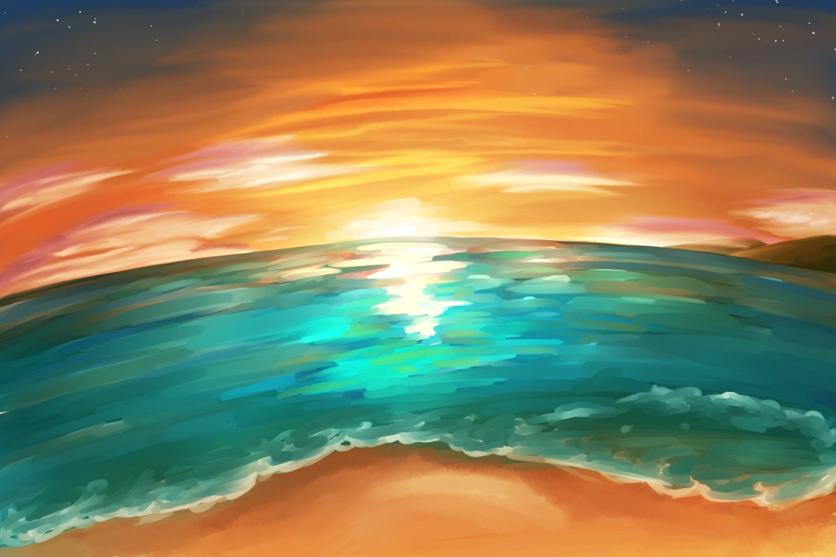 風景の中にキャラがいる油絵風イラストは憧れ #落書き #絵描きさんと繋がりたい