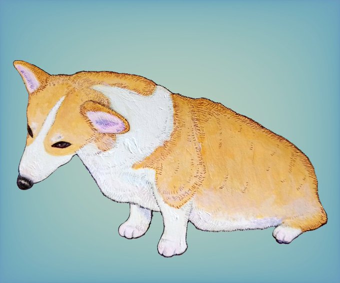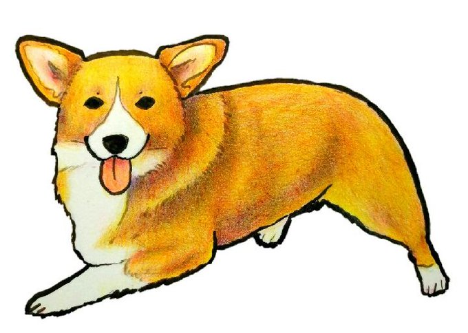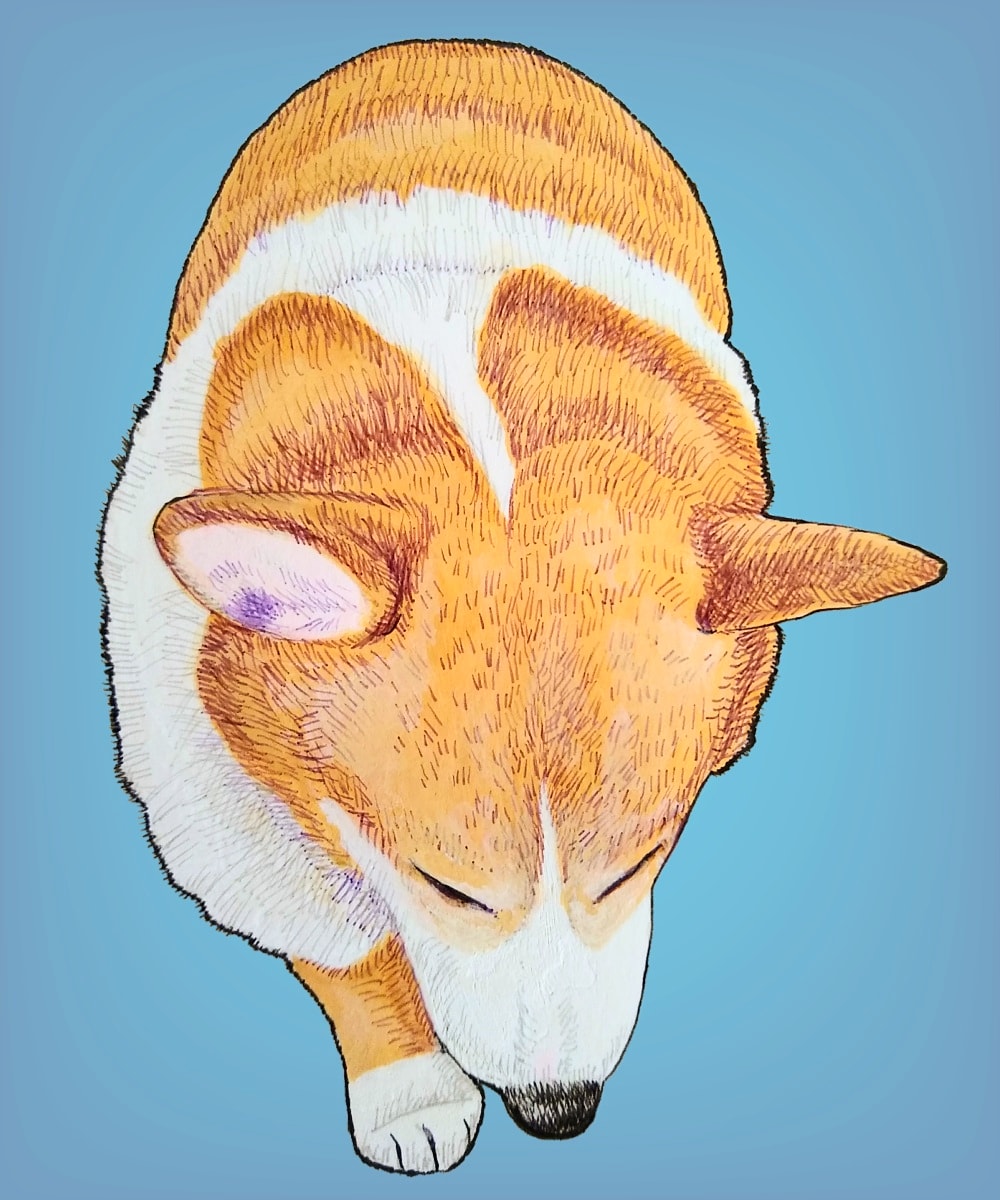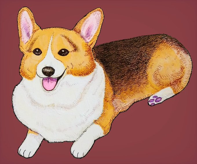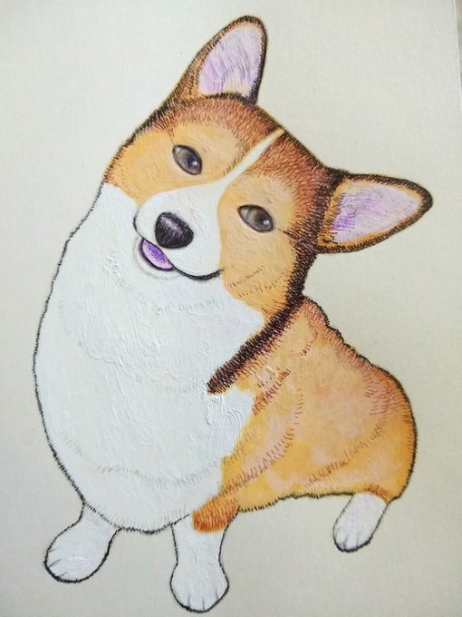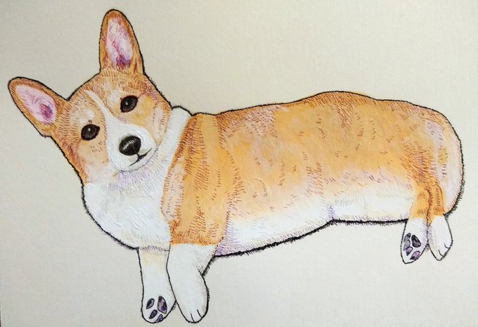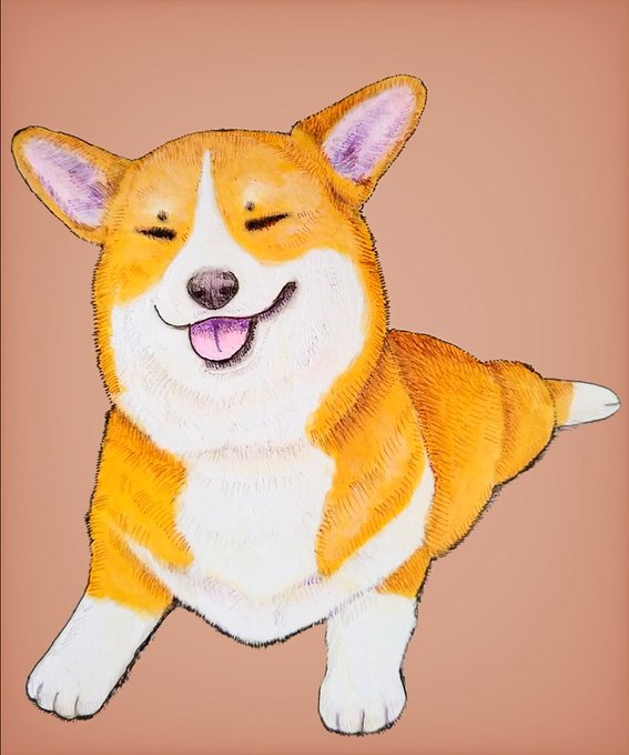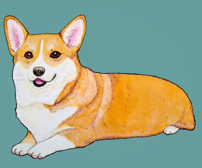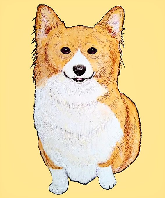イラストメイキング完成 ペンで輪郭や毛皮、顔を描きました。コーギーを描いていると「ぼく可愛いコーギーちゃんだよ!」と言うコーギーの声が聴こえてきます(笑)私の描くコーギー達は、自己肯定感がとてつもなく高いです。 #メイキング #イラストメイキング #ペン画