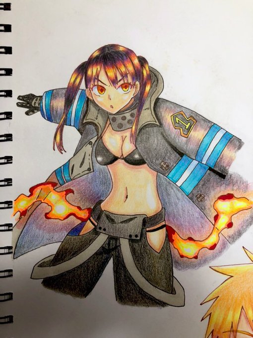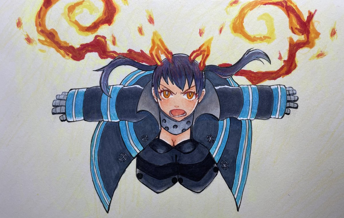 #成長してると思ったらRT 「1年前と同じ絵を描いて成長を実感しよう!」第4弾 1年前は100均のアルコールマーカー、今回はコピックで描きました(^^) アナログで逆光ってどうやって描くの⁇ #イラスト #イラスト練習中 #イラスト好きさんと繋がりたい #炎炎ノ消防隊 ←1年前 1年後→