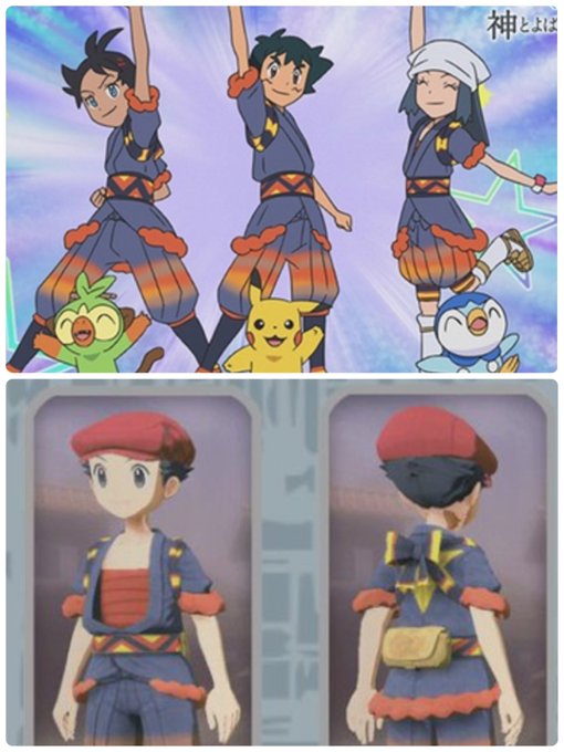 アルセウス編の衣装、ゲームは前はだけてるのにアニメはきっちりしめてありそうね…ファンアートははだけさせていいですか