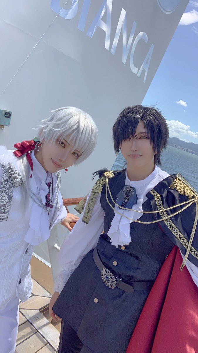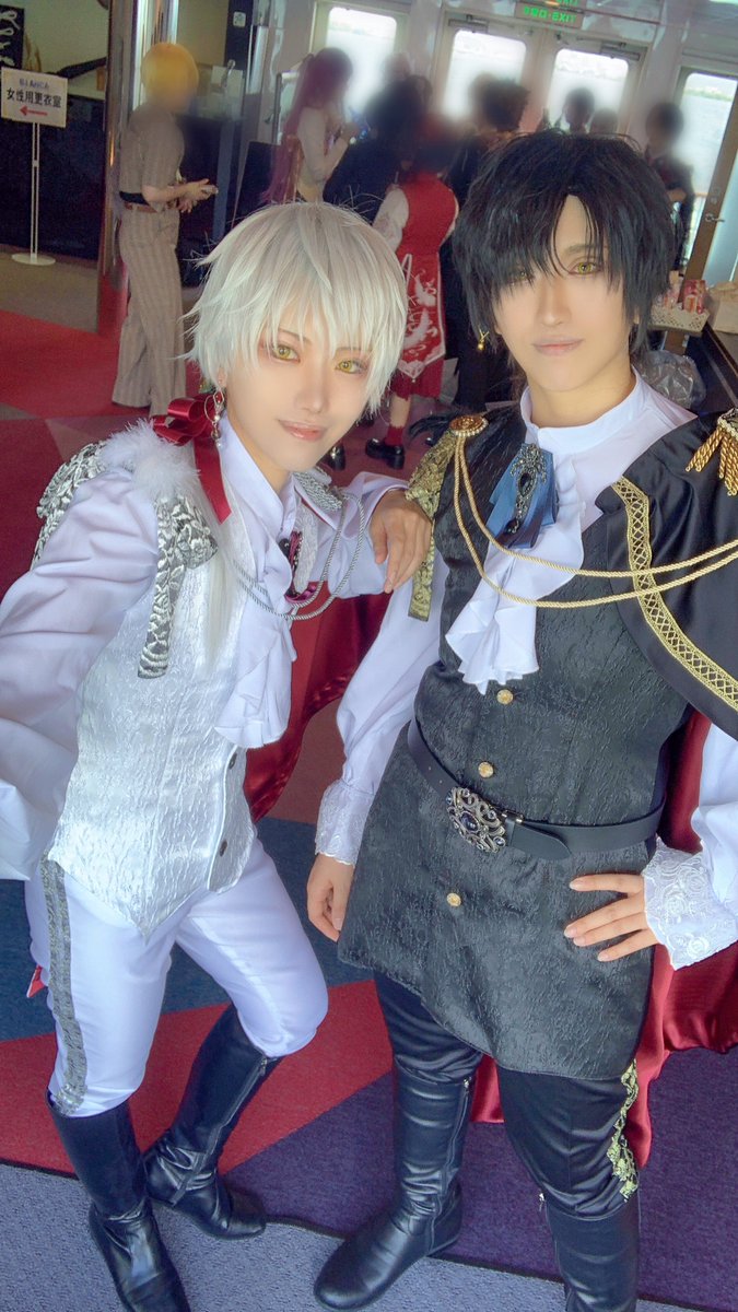 鶴丸で!乗船してきました!🛳 主のひろくんデザインの衣装🎶 お揃いの衣装小物こさえて参加してきた👔 華やかな空間でびっくり!皆さんお疲れ様でした😉 とりあえず! 主、カッコいいだろう??🥳 #0716船上饗宴会