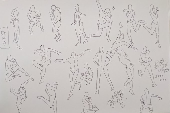 0 2 #PoseOfTheDay #posemaniacs @posemaniacsより 60日目。30秒ドローイング。間に合わなかったポーズがチラホラ。 22/06/01 09:53