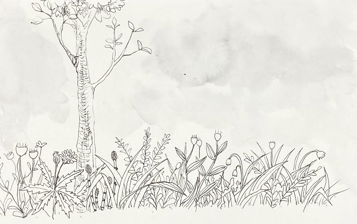 0 2 草むら別バージョン #背景画 #ペン画 23/04/14 19:54