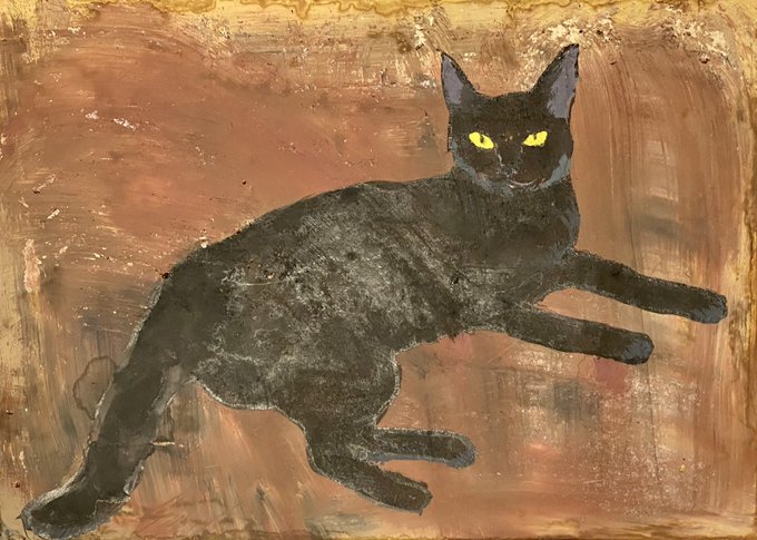 5 22 黒猫 #日本画 #猫の絵 23/05/08 19:45