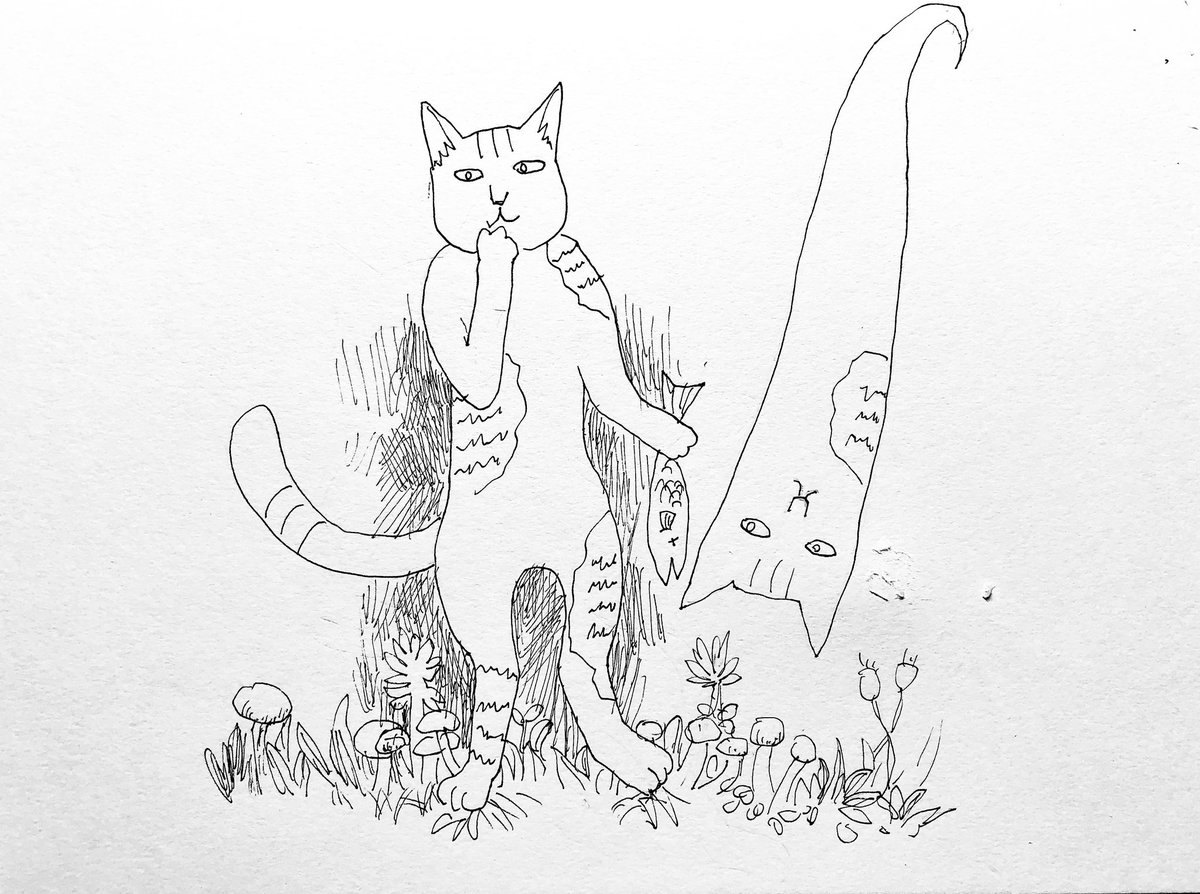 生前と死後。彼は妖怪になった。 #猫の国 #ペン画
