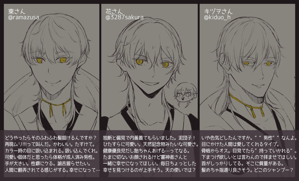 #いいねしてくれた人の本丸の鶴丸国永を描く ひとまず6名の鶴丸描かせていただきました~!感想は完全に個人の偏見ですゆるして
