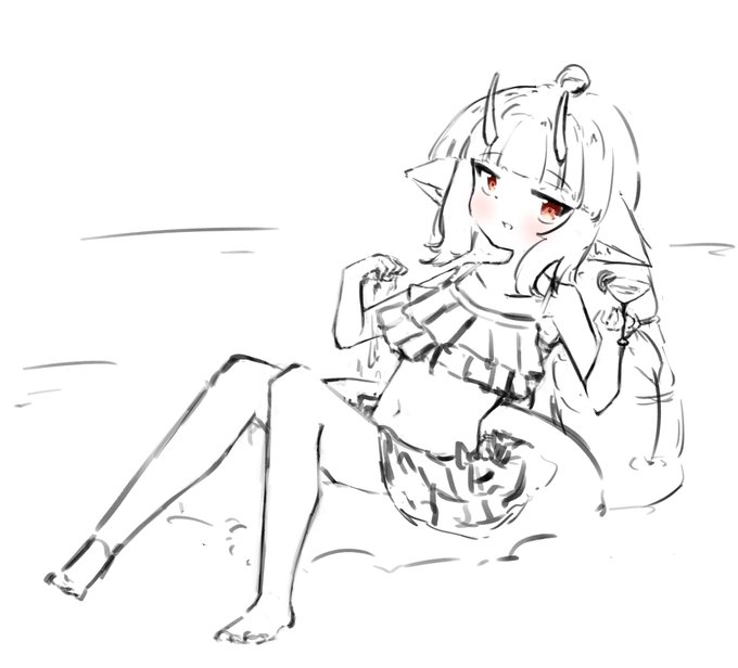 なつです。うみです。みずぎみんです。 #イラスト #コンパス #コンパスお絵描き
