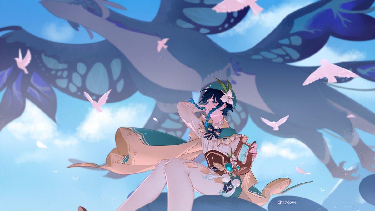 "How wonderful it would have been if you were as I, witnessing your noble, beautiful form as you soared through the blue sky." #Venti #GenshinImpact