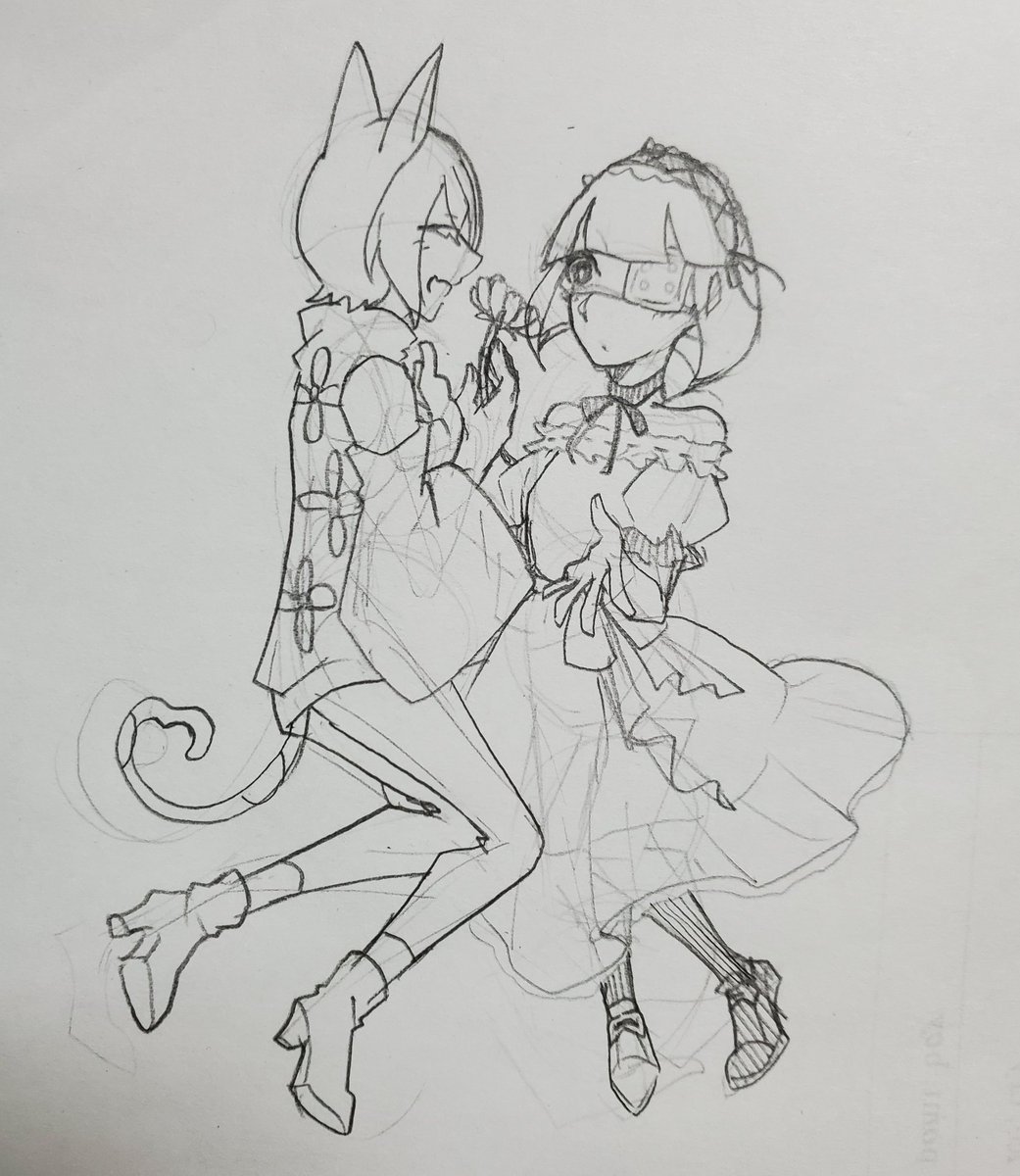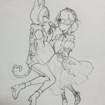 #どう森美術部 シャーペンでがしがし落描き 拙宅村長とニコバンくん(擬人化)
