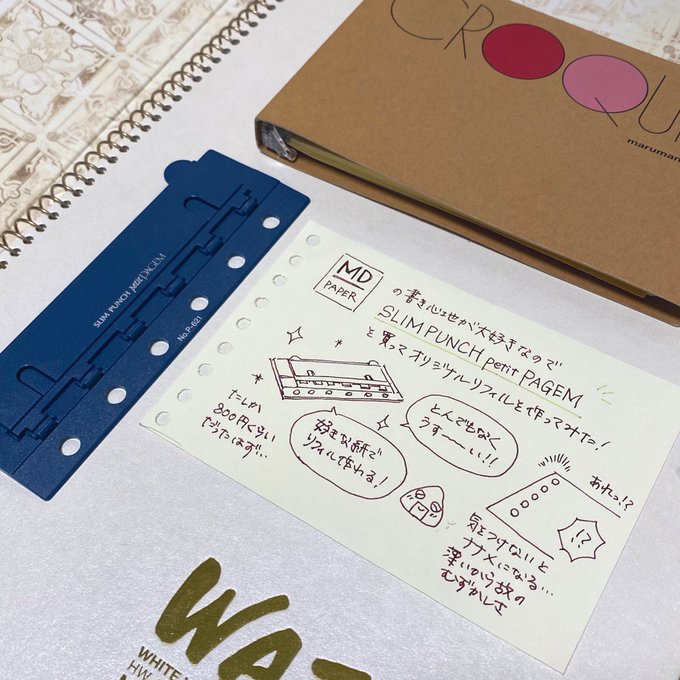 1 16 待望のスリムな穴あけパンチ(SLIM PUNCH petit ペイジェム)を買ってMDペーパーをリフィルにしてやったぜ!これでMDペーパーでお外で落書き出来る😚 20/09/22 21:24