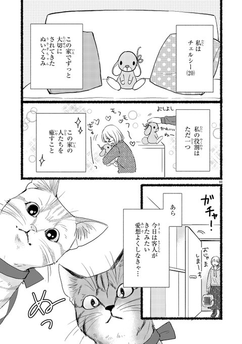 21 47 猫に嫉妬するぬいぐるみの話(1/3)#保護猫 #もふもふのほんと #漫画が読めるハッシュタグ 21/03/23 11:42