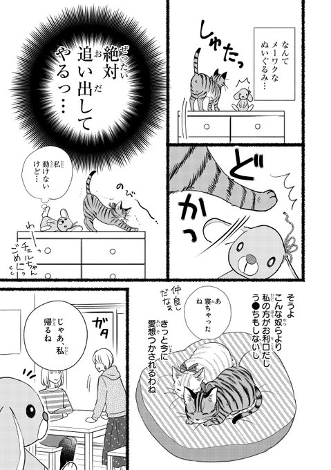 4 17 猫に嫉妬するぬいぐるみの話(3/3)#保護猫 #もふもふのほんと #漫画が読めるハッシュタグ 21/03/23 11:45
