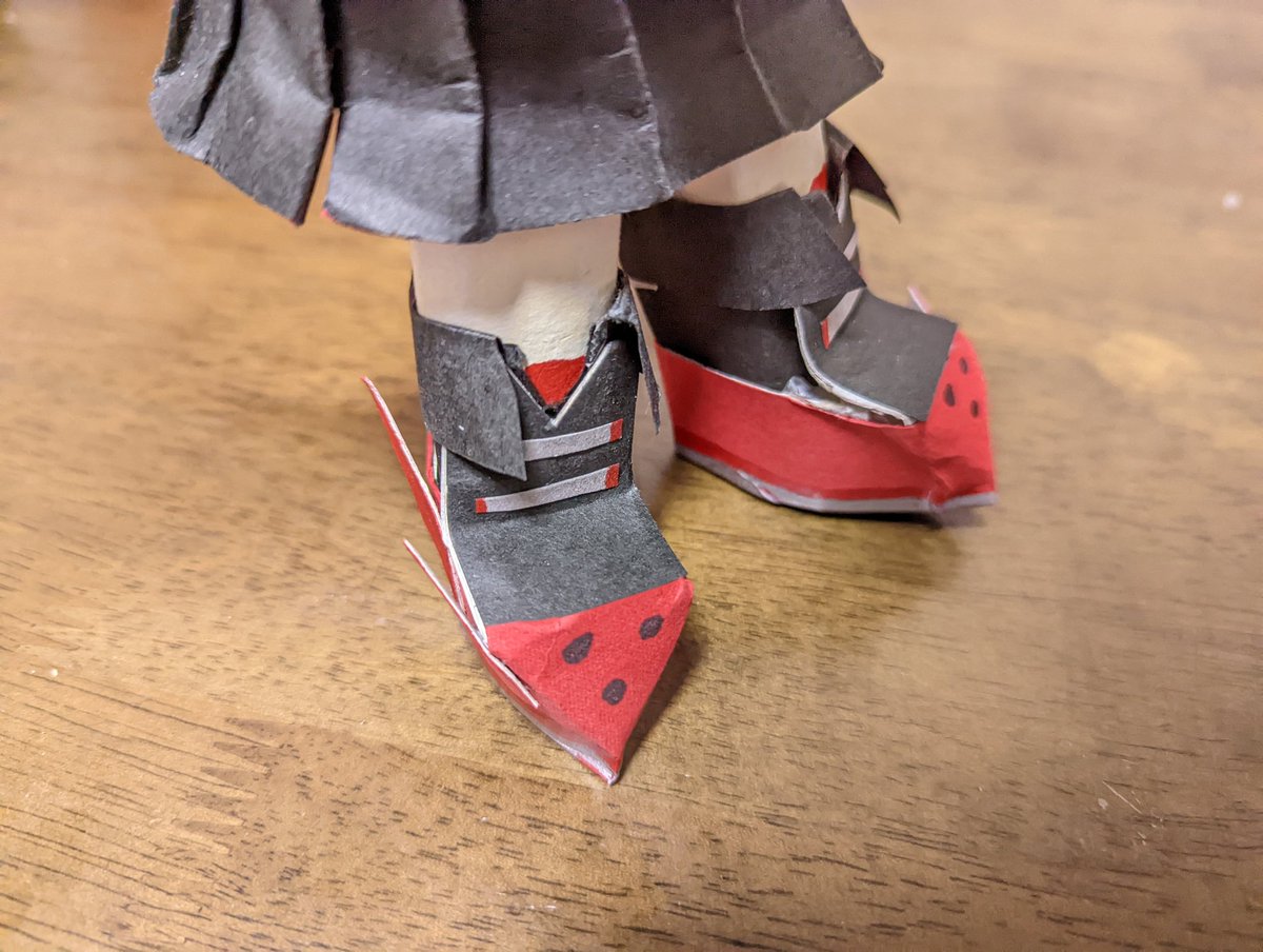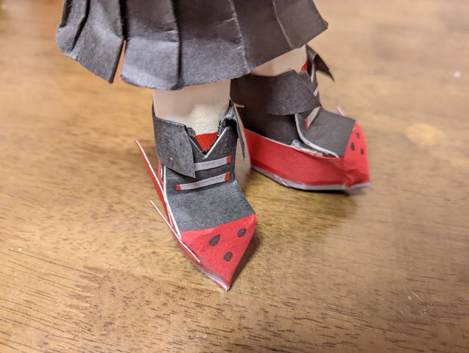 約5日ぶりのペーパークラフト進捗 今日は靴を作りました どう作るか悩んだので 結構日にちが経ちました… 残すは腕と頭部のみ!! #ペーパークラフト