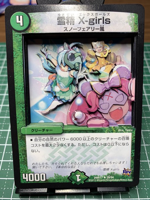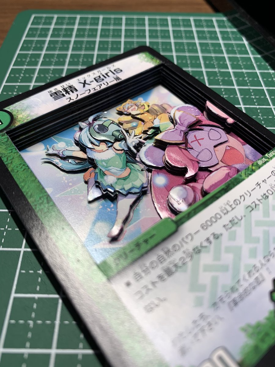 シャドーボックス 25個目 デュエルマスターズ 雪精X-girls 使用枚数 7枚 細かい曲線、いつまでたっても上手く切り出せない #デュエマ #デュエルマスターズ #シャドーボックス