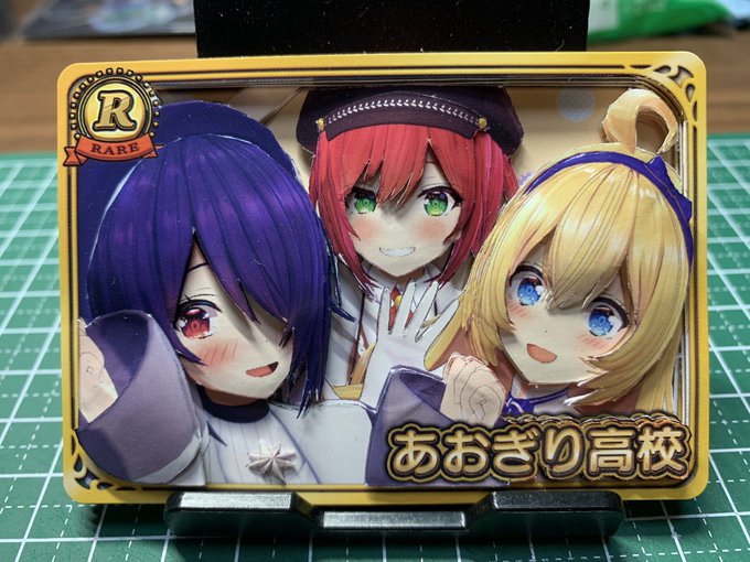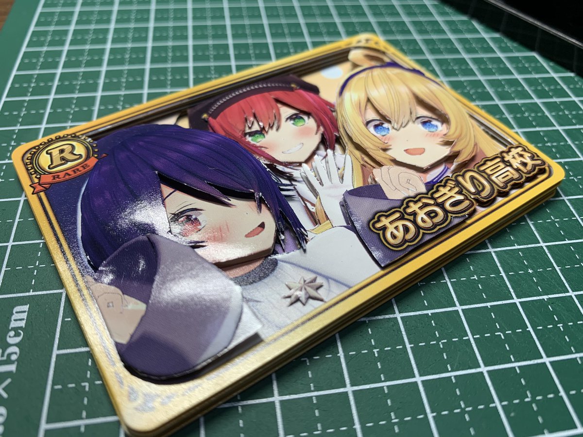 シャドーボックス 11作目 VTuberチップス R あおぎり高校 使用枚数5 枚 パーツ数少なめでさくっと 滲みやすくて断面処理が綺麗に出来なかったのが残念 ぶっ飛んだ企画の多いあおぎり高校ch好きです。 #シャドーボックス #あおぎり高校美術部 #音霊魂子 #石狩あかり #水菜月夏希