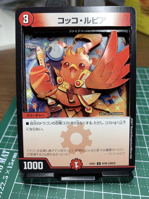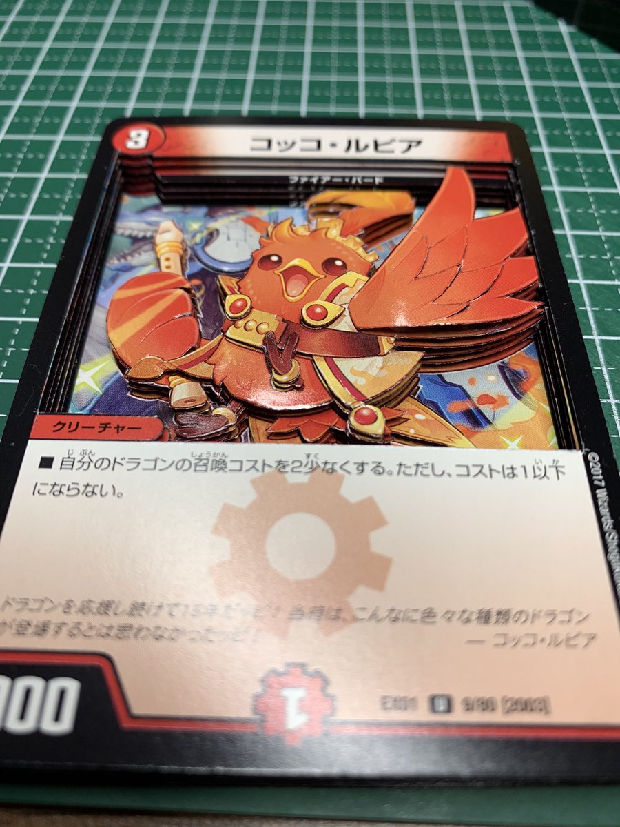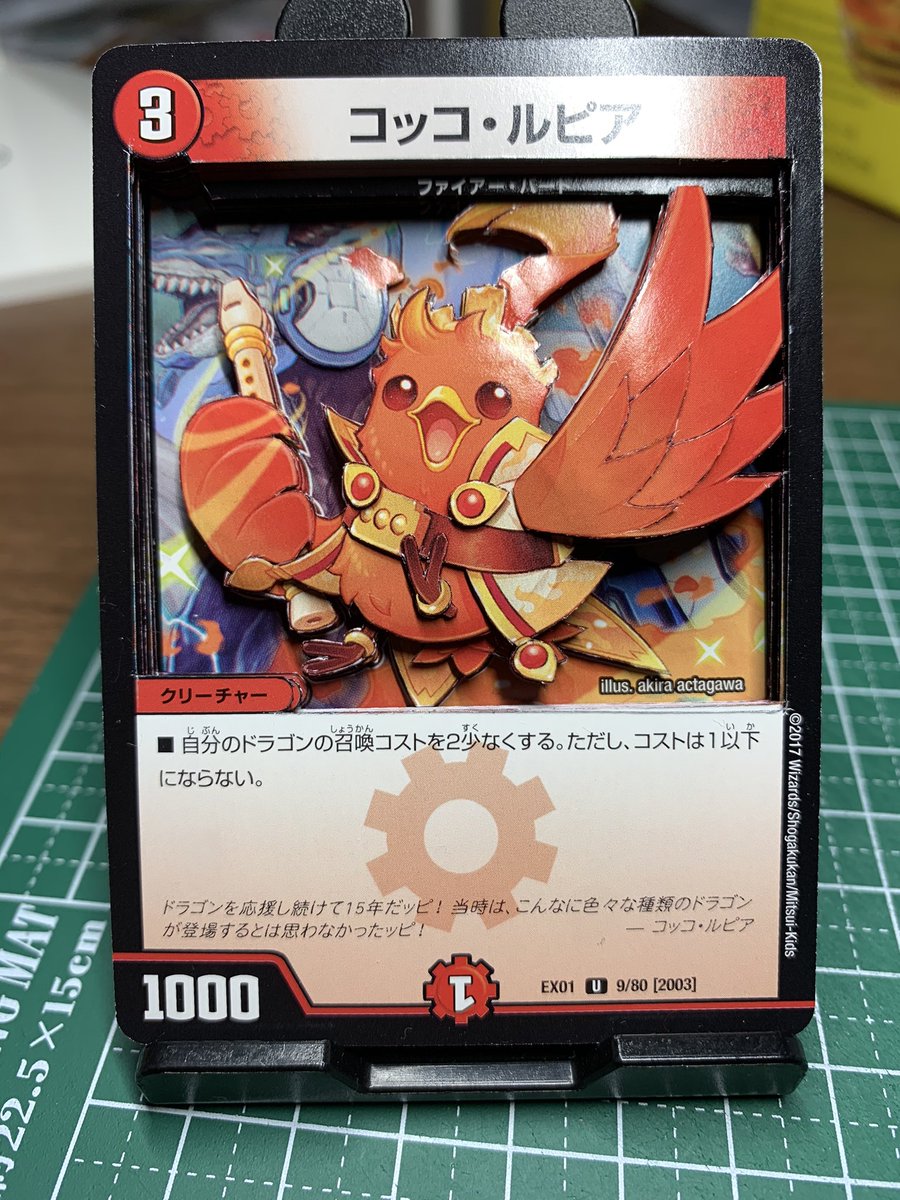 9 28 シャドーボックス デュエルマスターズ コッコルピア 使用枚数 6枚 羽の部分上手く表現出来た気がします 組み上げた後に冠切れてないの気付いた… #デュエルマスターズ #デュエマ #シャドーボックス 21/04/13 23:57