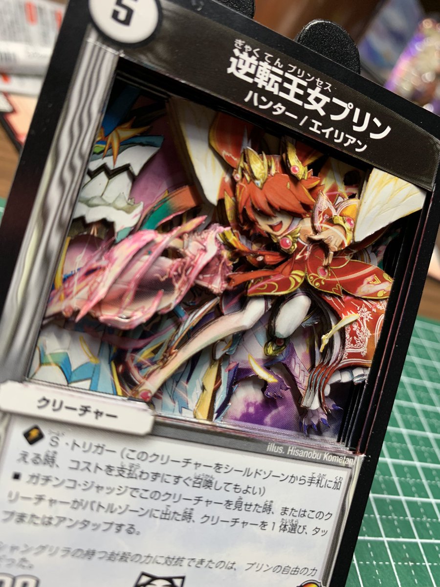 シャドーボックス デュエルマスターズ 逆転王女プリン RevF版 使用枚数 7枚 2作目に作ったプリンの別バージョンを作ってみました どのバージョンのイラストも素敵よなぁ #デュエルマスターズ #デュエマ #シャドーボックス