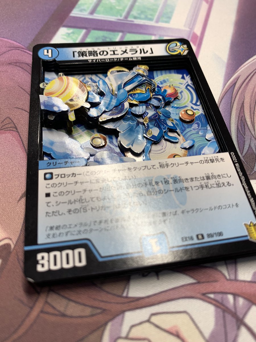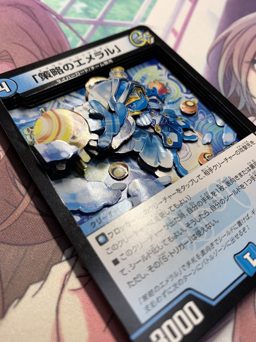 8 13 シャドーボックス デュエルマスターズ 「策略のエメラル」 エメラル・トリックスター 6枚使用 右手の怪我ある程度良くなったから 久しぶりにシャドボ作った 作りたいと思って買いだめしておいたエメラル、こっちのイラストかわいいわ #デュエマ #シャドーボックス #新作シャドーボックス 22/01/13 20:17