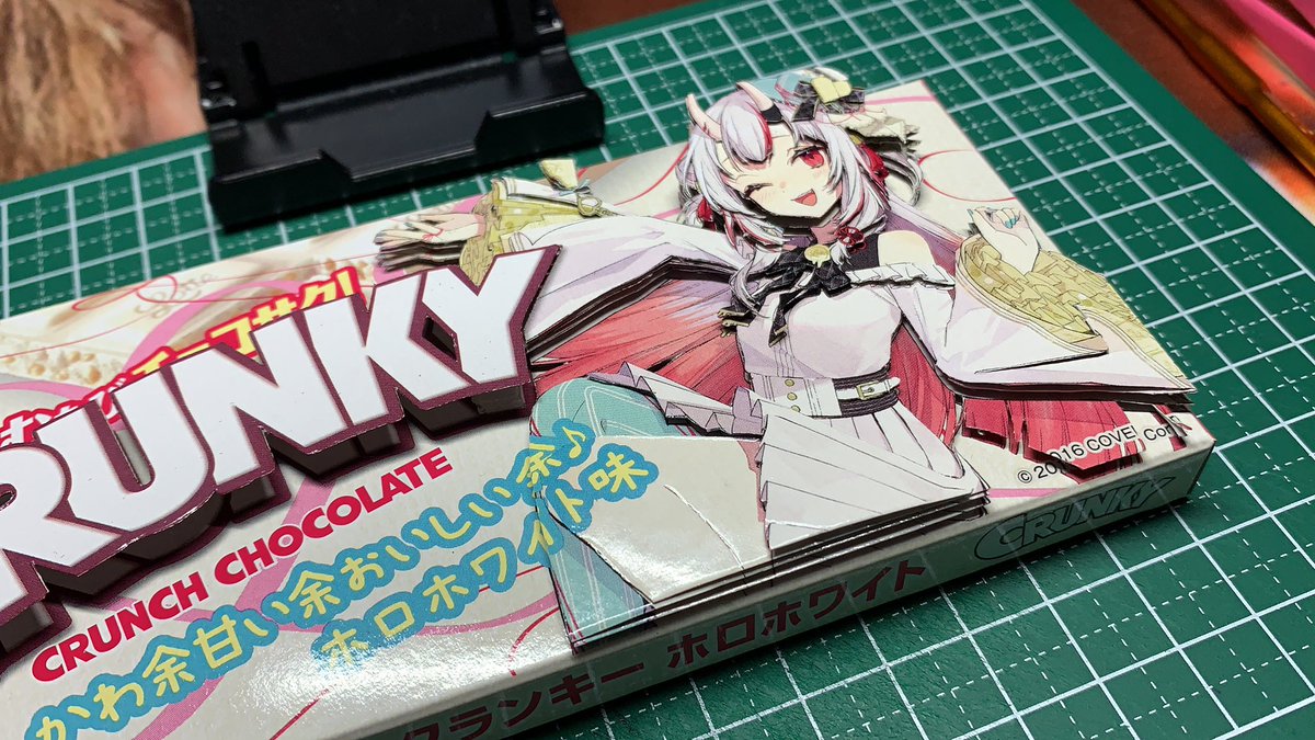シャドーボックス ホロライブ クランキー ホロホワイト 百鬼あやめ コラボパッケージのお嬢が可愛かったので作ってみました もう少しいろいろ上手く手を加えたかったけど、失敗してダメにしないように簡単に仕上げ #シャドーボックス #ファミマでホロバレンタイン #ホロライブ #百鬼あやめ #百鬼絵巻