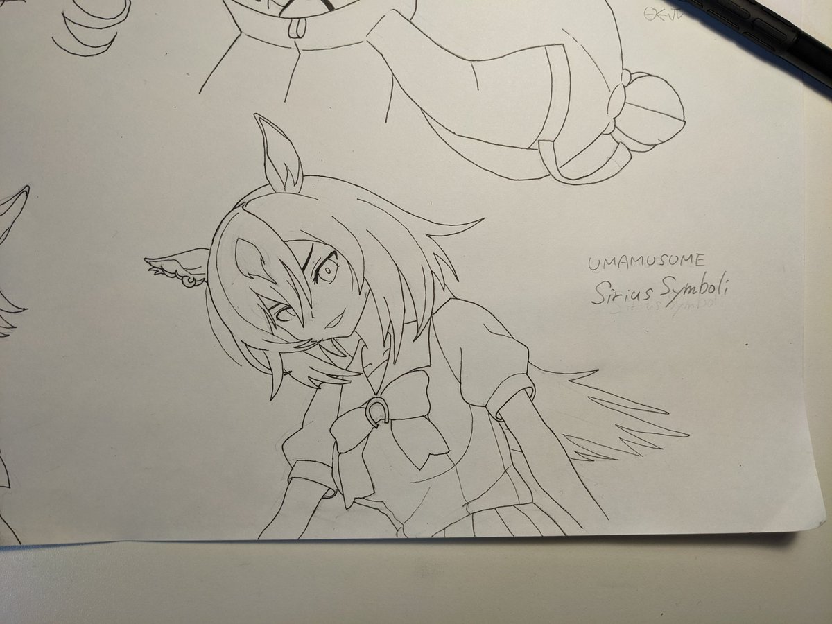 1 4 ボールペンで書いてる途中のシリウスシンボリです。こういう悪い顔いいですよねなんか^^ #ウマ娘 #シリウスシンボリ #線画 #イラスト #イラスト好きな人と繋がりたい 23/03/25 14:57