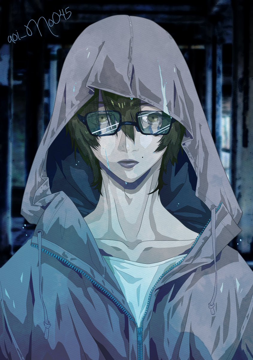 第百五十回、織安ワンドロ お題⇒『過去お題よりお好きなもの』 #文スト織安版深夜の六十分一本勝負 前回のイメージイラストとしてずぶ濡れんごちゃんを描いてみました。 お題は第一回の『眼鏡』という事で、眼鏡の中には赤毛のあの人が……