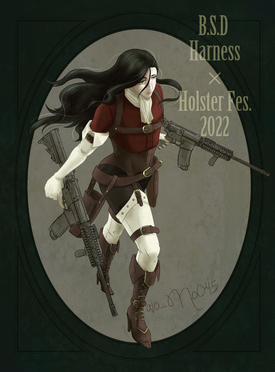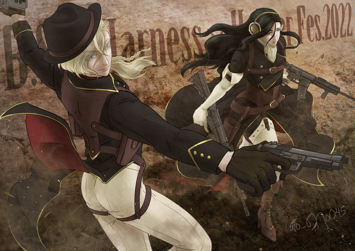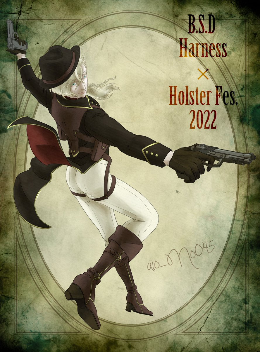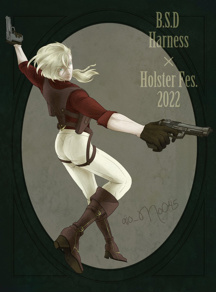#夏のハーネス・ホルスター祭 お祭り開催おめでとうございます✨ 今回はヴェル蘭で参加させて頂きます😊✨ メインは二人のイラストですが、折角全身も描いたので載せておきます😖💦 明日にはまた別バージョンを投稿予定なのでお楽しみに……