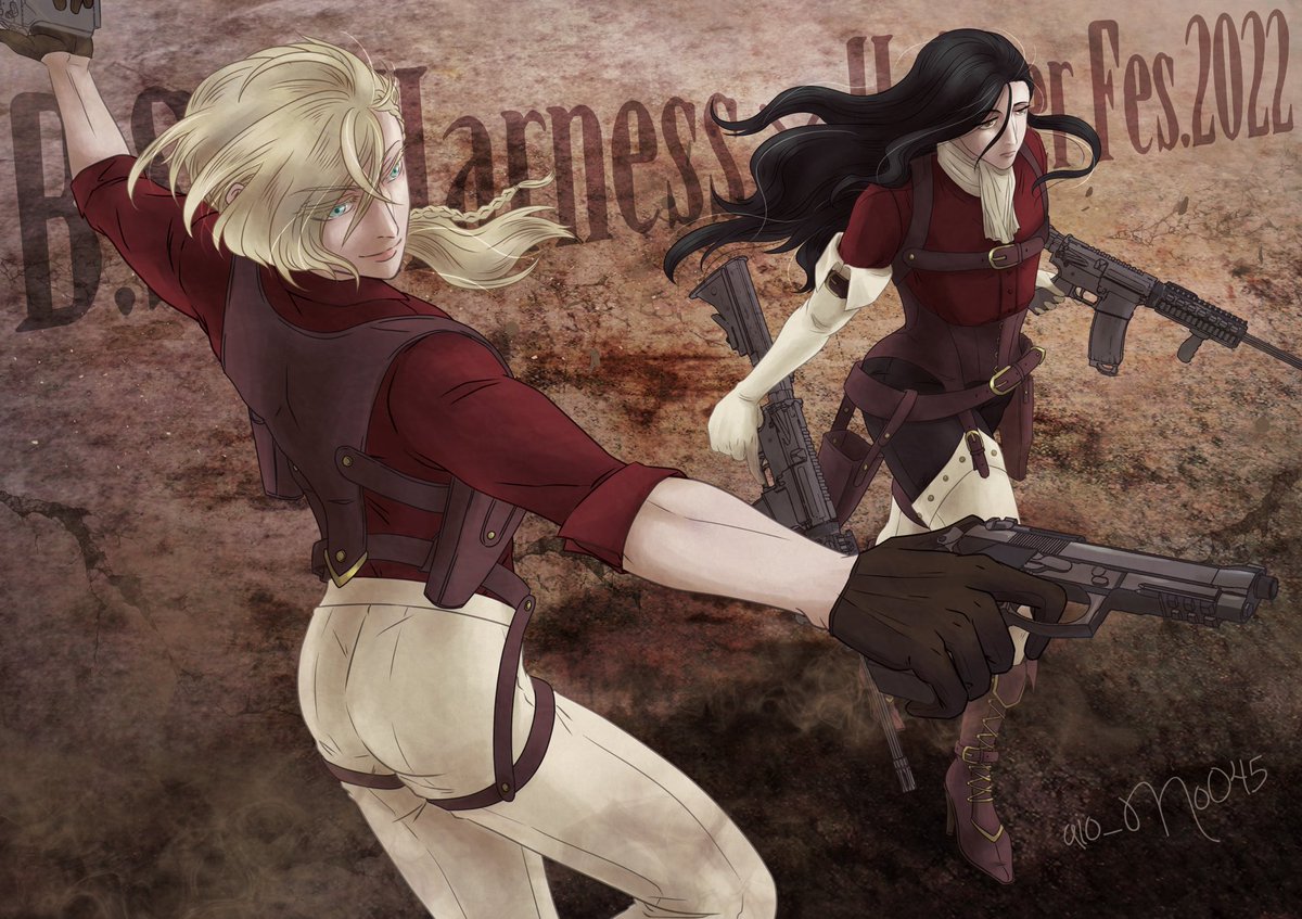 #夏のハーネス・ホルスター祭 昨日のイラストの別バージョン!! 脱いでなんぼの祭じゃーーーー!!!! ヴェルランで共闘してるの見たいですよね……うふふ🥰💕 最終日の明日はオマケの落書きですが、ちょっとした二人の一コマをお届けしたいと思います😌✨