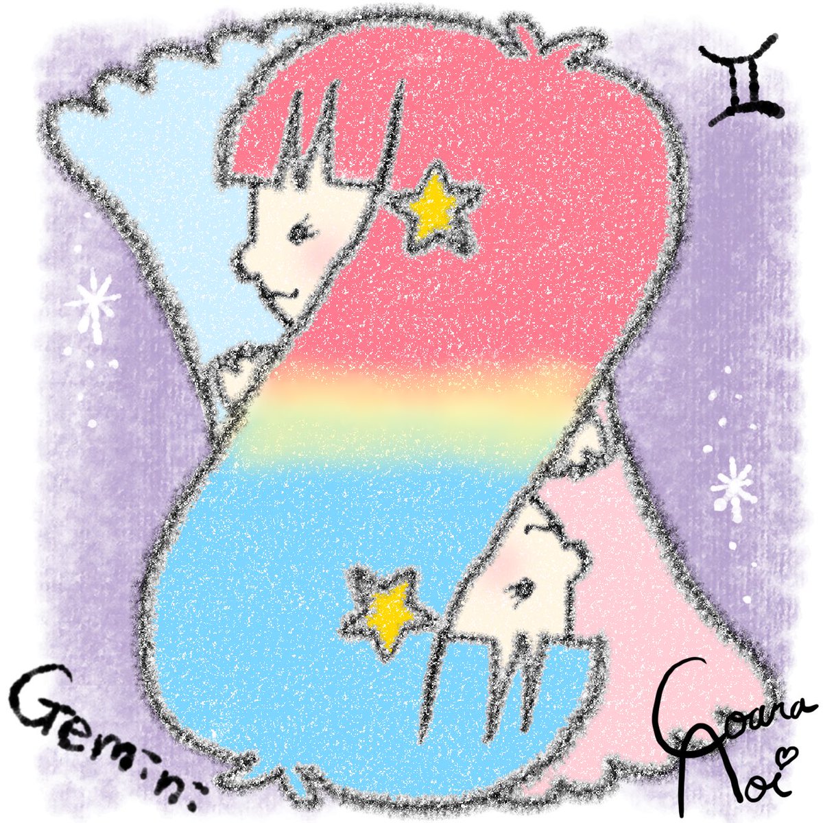 1 16 【星座シリーズ】 ふたご座♊︎を描きました。 #イラスト #お絵かき 23/03/22 18:03