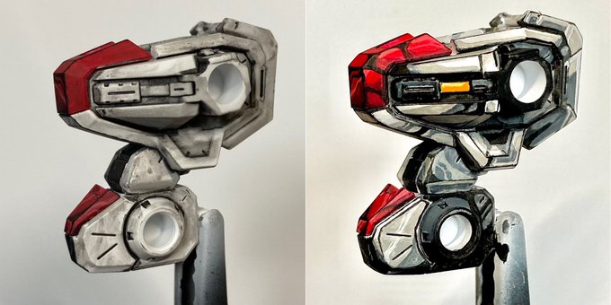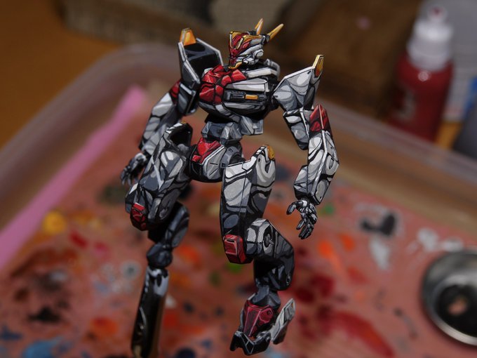 ガンダムアーティファクト V2アサルトバスターガンダム ホログラムっぽい手書きマーキングを入れながら塗り分け! 久しぶりに触りましたが高カロリー😅 #ミニチュアペイント #ガンプラ #ガンダムアーティファクト #筆塗り